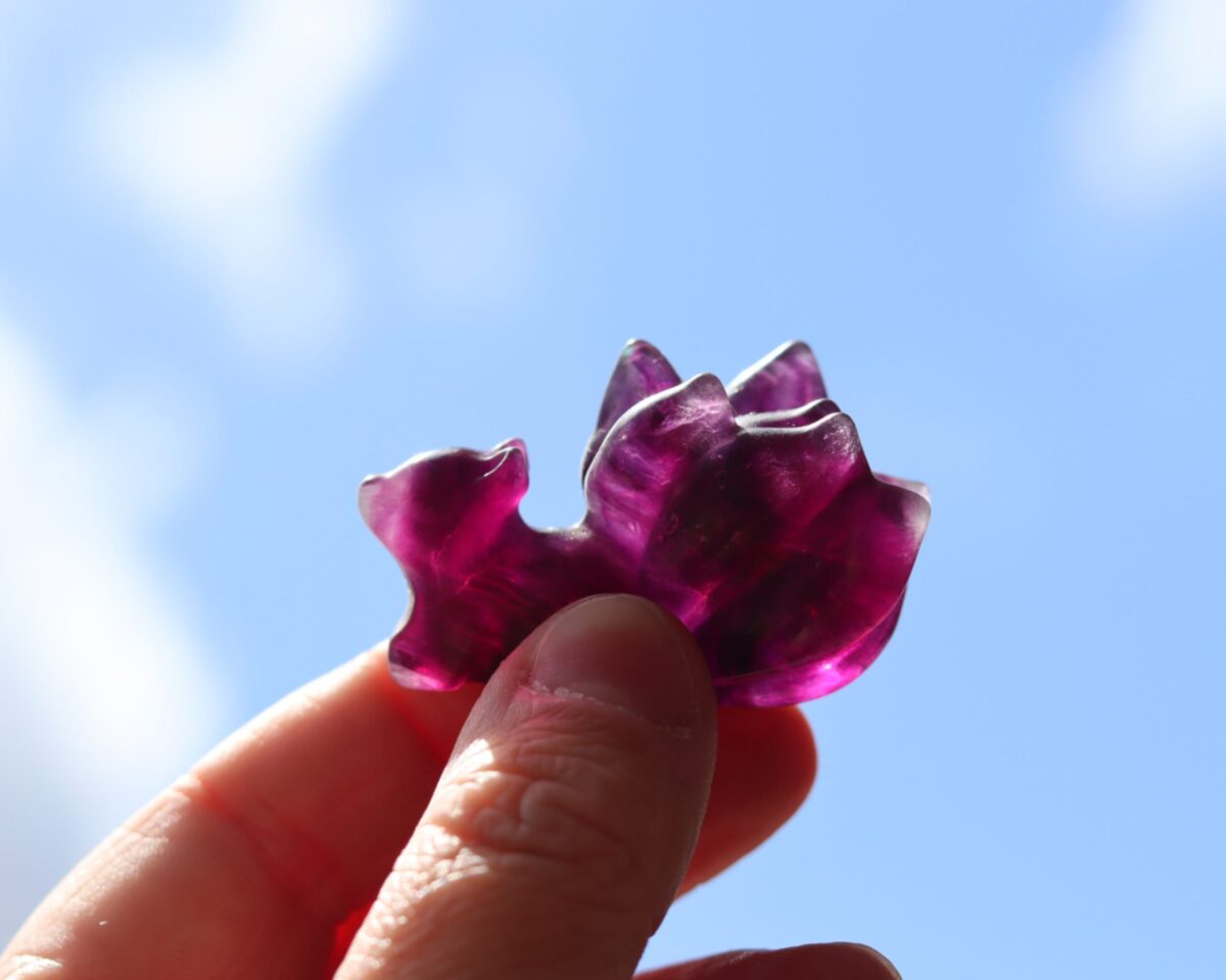 Deze charmante Regenboog Fluoriet Ninetail carving is op zoek naar een liefdevol thuis! Met haar afmetingen van ongeveer 4 cm breed en 3 cm hoog voegt ze niet alleen een vleugje schoonheid toe aan elke ruimte, maar biedt ze ook de kalmerende energieën van Fluoriet. Wie geeft deze bijzondere steen een plekje in hun huis?