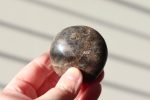 Deze prachtige zwarte maansteen handsteen heeft een mooi patroon en zelfs een lichte flash. De handsteen weegt 100 gram en is ongeveer 5 cm in diameter.