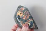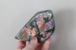 Deze super mooie labradoriet heeft een veelkleurige, felle flash met mooie patronen, zowel aan de voor- en achterzijde! Een plaatje om te zien, met een hele fijne werking. Ze weegt 482 gram en is 7 cm breed en 8,5 cm hoog. Bij wie mag ze komen wonen?