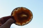Warm, speels, uniek… deze agaatschijf heeft het allemaal. Door deze combinatie blijf je ernaar kijken en zie je steeds weer iets nieuws. Van deze agaatschijf raak je niet uitgekeken.