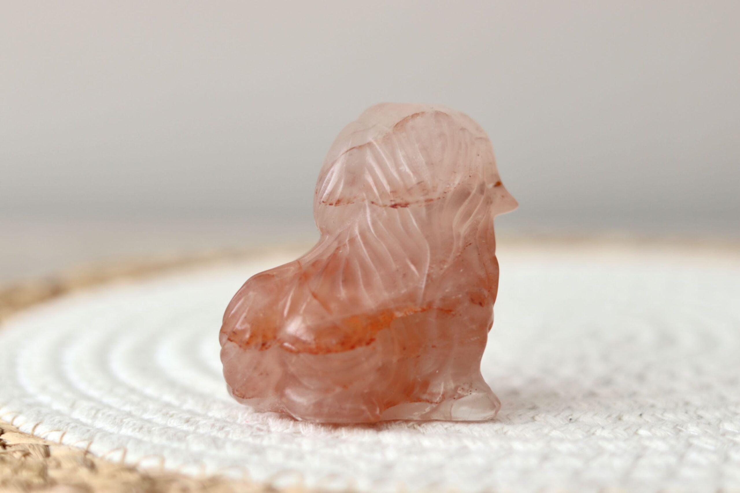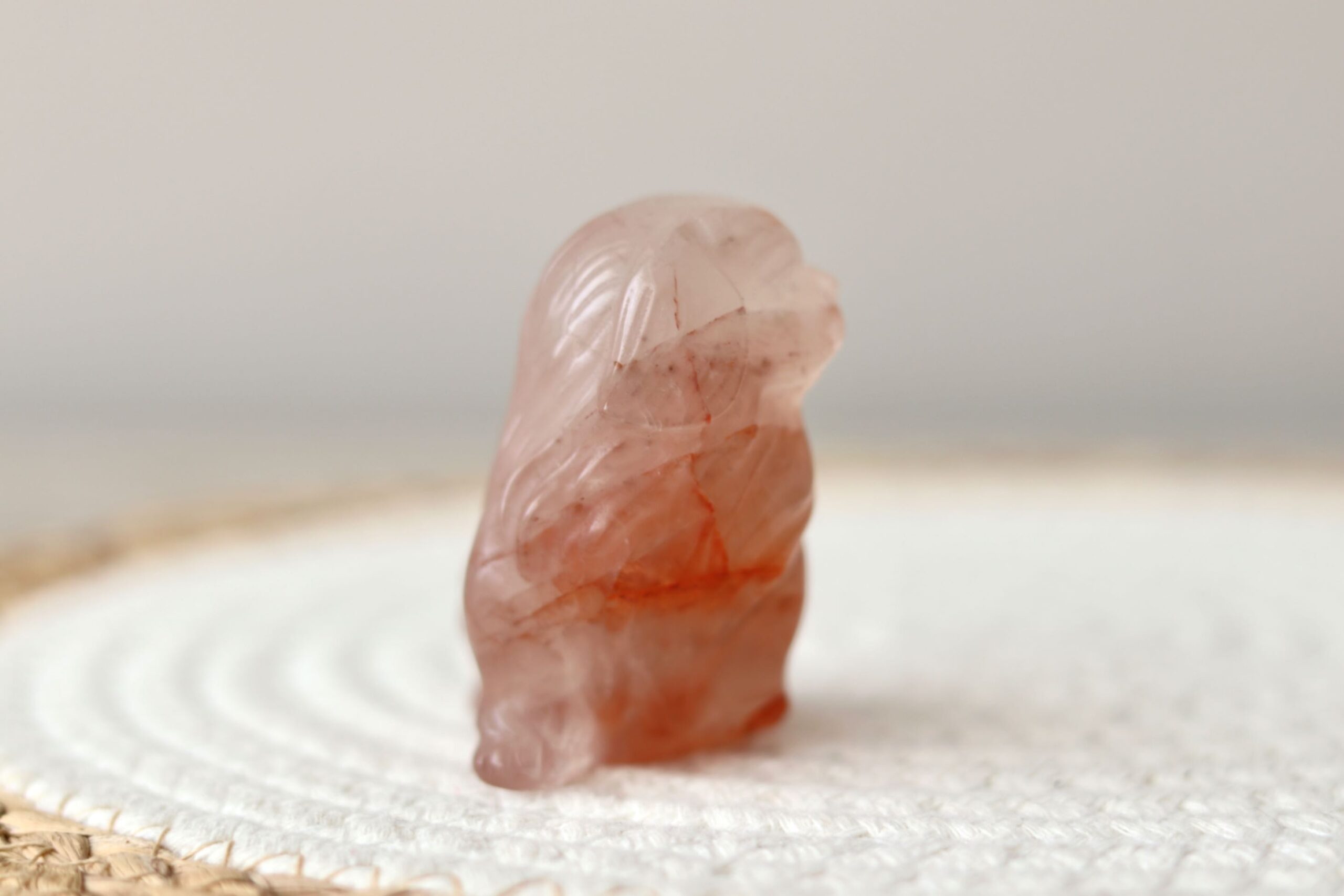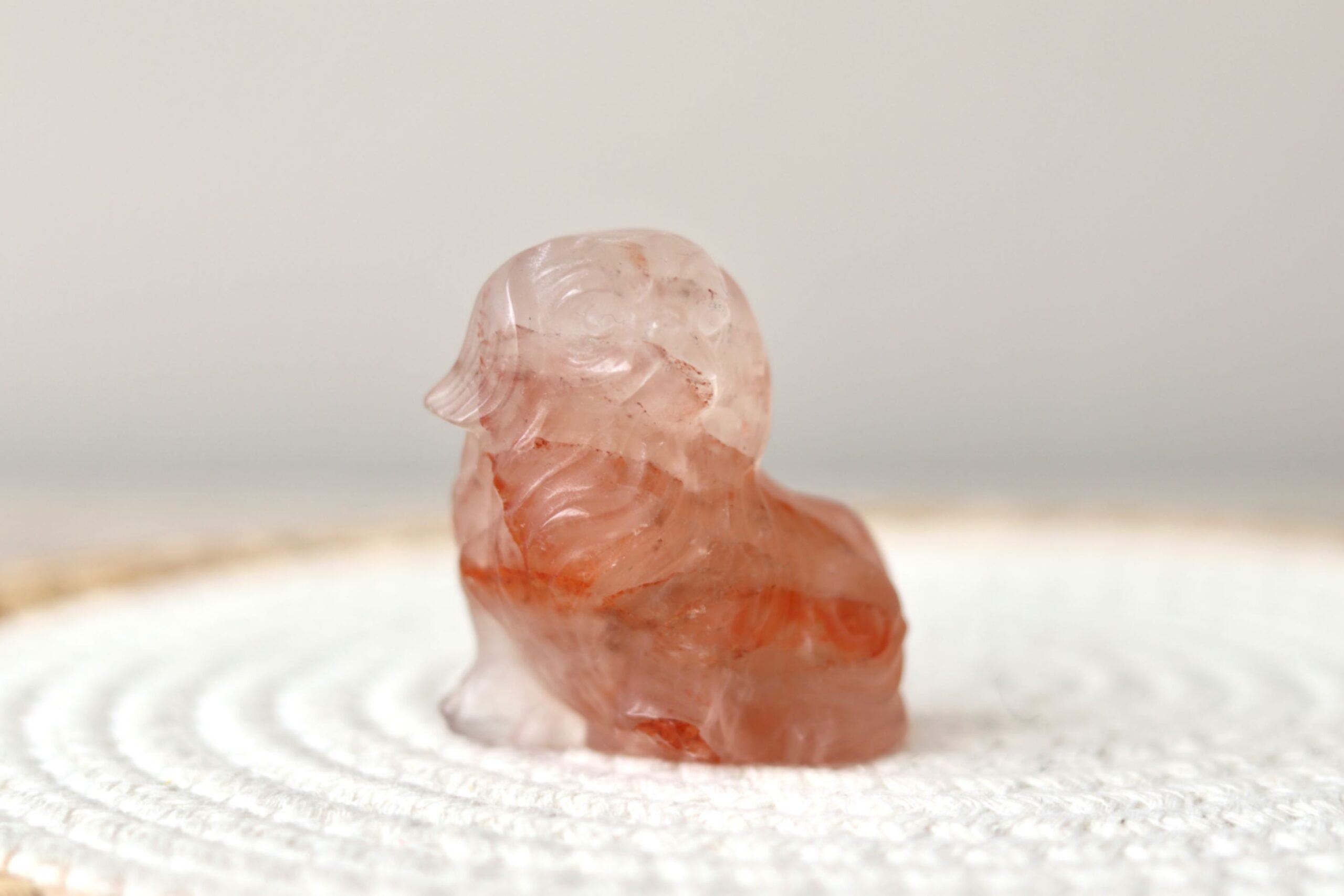De vuurkwarts carving hond is een bijzonder item met een warme, krachtige uitstraling. Vuurkwarts, ook wel hematoïde kwarts genoemd, wordt vaak gekozen omdat de steen helpt bij emotionele balans en het loslaten van woede en negatieve gevoelens. Ook kan vuurkwarts ondersteunen bij aarding en stabiliteit, en juist in stressvolle tijden voelt dat voor veel mensen als een fijne, stevige basis.